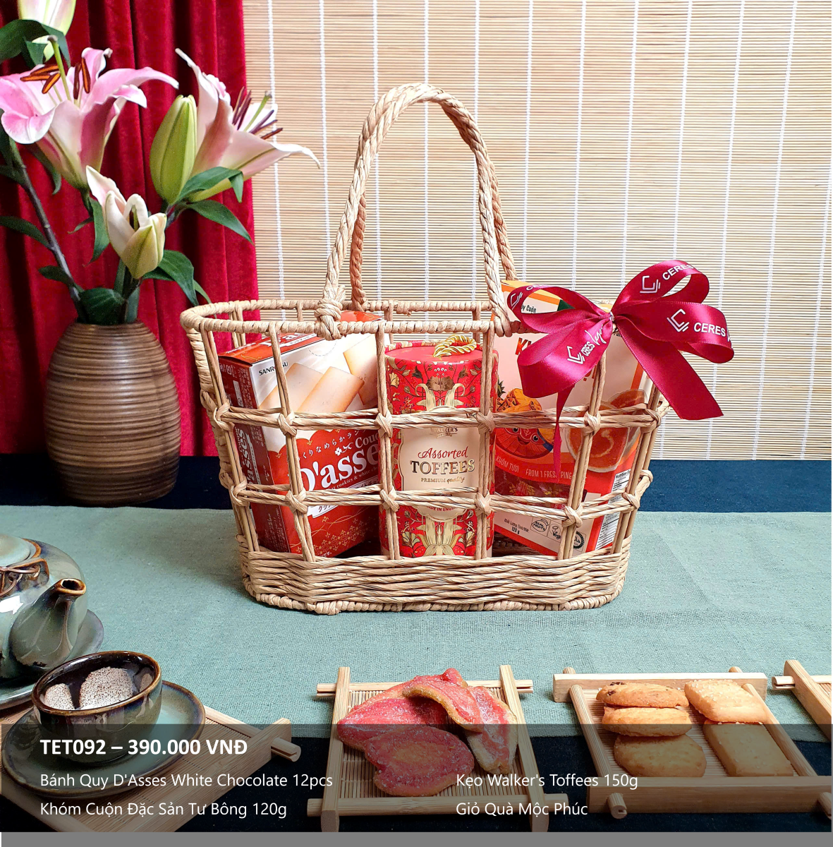 Giỏ quà được thiết kế theo tinh thần xanh – lành – bền vững, phù hợp với triết lý làm đẹp an toàn, chăm sóc từ gốc và tôn trọng cơ thể lẫn môi trường. Từng chi tiết đều hướng đến sự cân bằng: giữa thẩm mỹ và công năng, giữa món quà trao đi và cảm xúc nhận về.