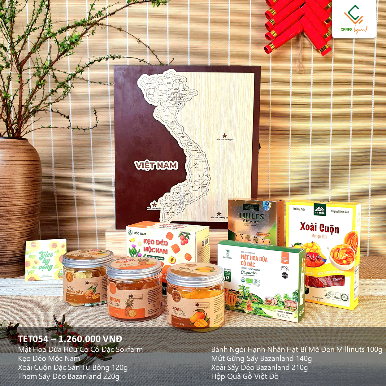 Hộp quà Việt Đồ khắc họa dáng hình đất nước trên gam nâu trầm ấm của gỗ, như một lời nhắc về cội nguồn, về niềm tự hào dân tộc và những giá trị bền bỉ theo năm tháng. Trong từng món quà là lời chúc trang trọng và sâu sắc: chúc vững nền và bền gốc, chúc hành trình doanh nghiệp mở rộng từ nội lực, chúc những kết nối được xây dựng trên niềm tin và sự tử tế.
