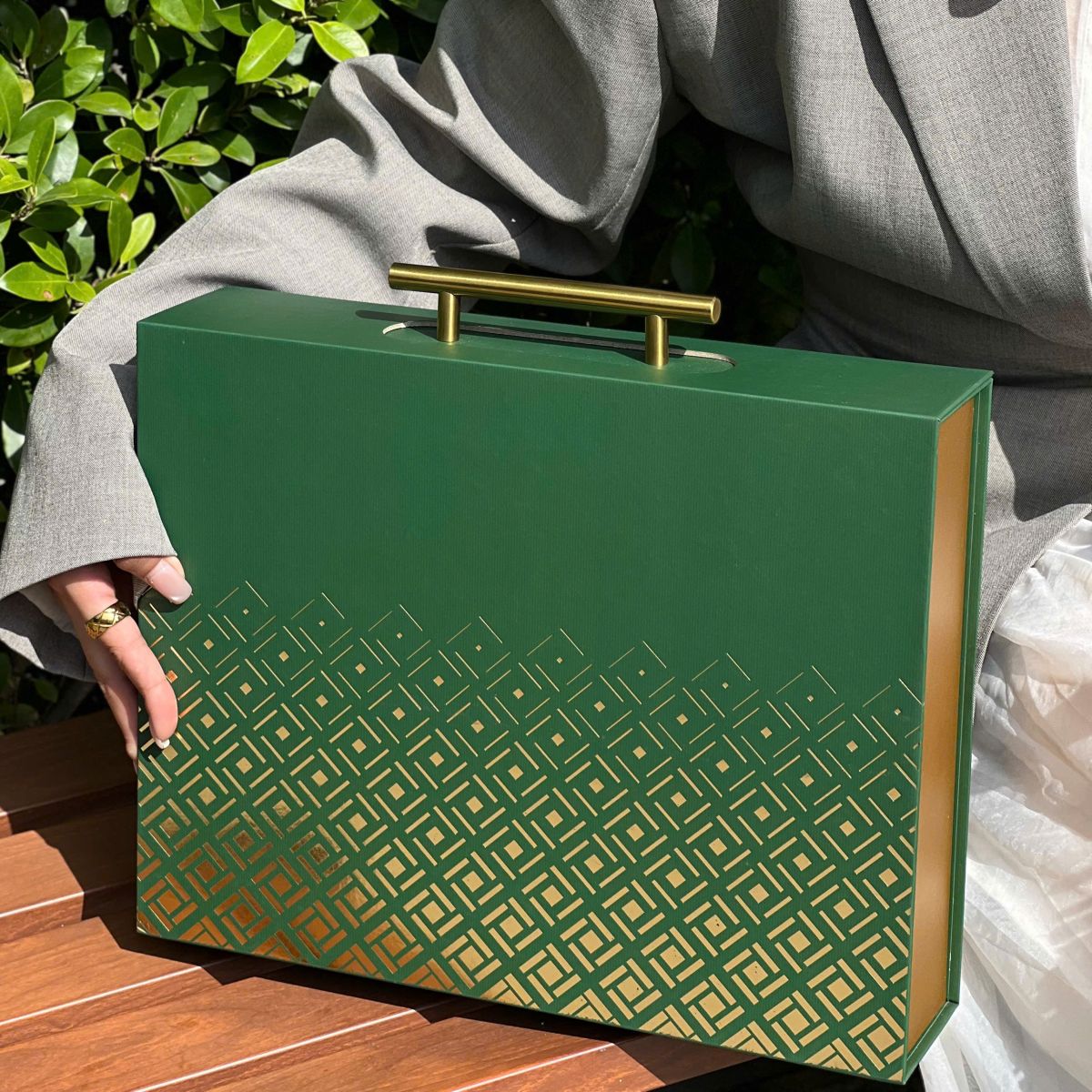 Lấy cảm hứng từ hình tượng ấn tín và đồng tiền vuông, Lộc Ấn sở hữu dáng hộp vuông vức, góc cạnh rõ ràng, đại diện cho sự ngay thẳng, chuẩn mực và kiên định. Họa tiết ép kim ánh vàng nổi bật trên nền màu trầm gợi cảm giác phồn thịnh nhưng không phô trương; sang trọng nhưng luôn giữ được chiều sâu của giá trị cốt lõi.