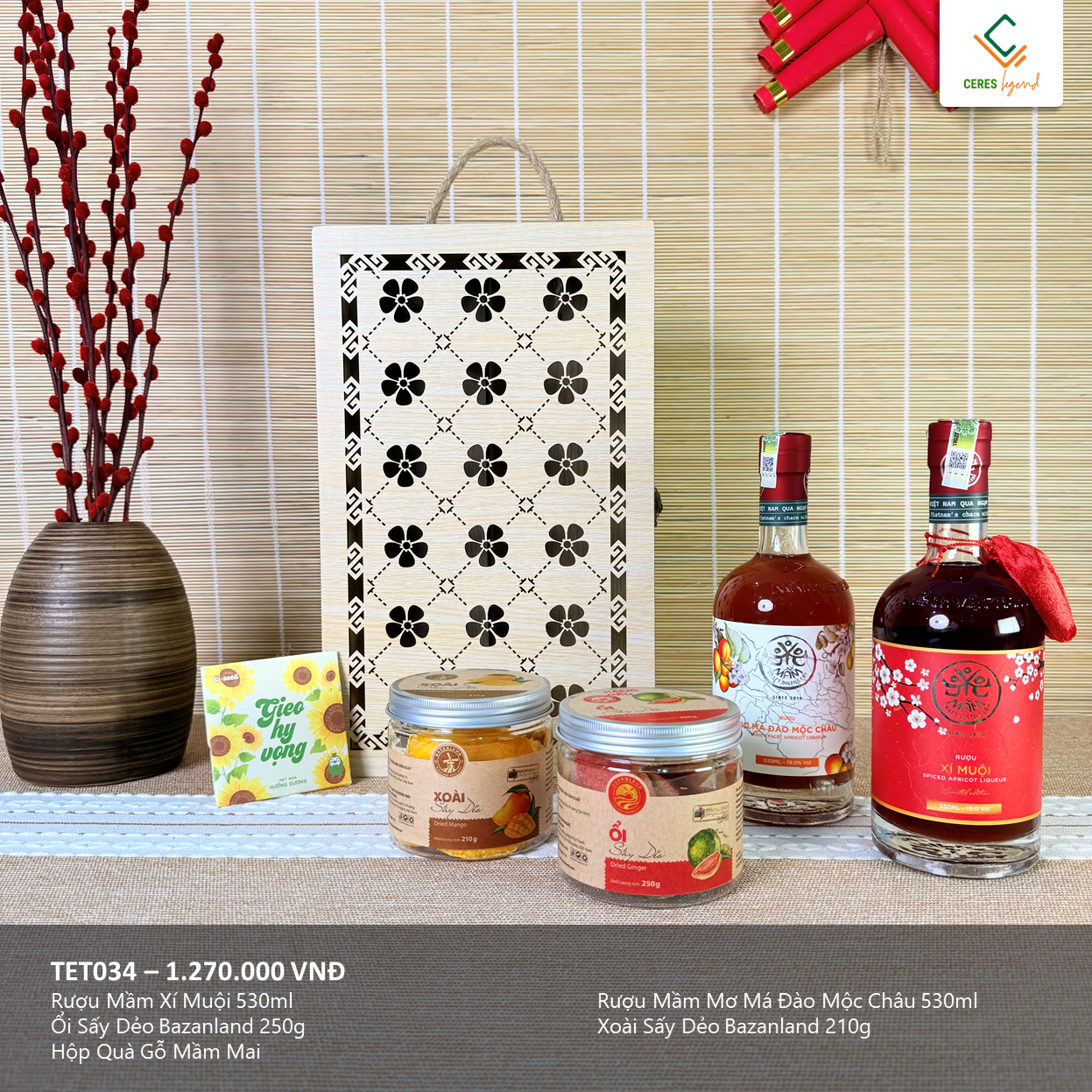 Hộp quà Mầm Mai gợi lên hình ảnh nụ mai khẽ nở giữa sớm xuân, tượng trưng cho sự khởi sinh tinh khôi và những điều tốt lành đang dần mở lối. Trong từng món quà là lời chúc ấm áp và vẹn nguyên: chúc một năm mới khởi sắc an yên, chúc công việc hanh thông rộng mở, chúc phúc lành đơm hoa và những dự định sớm thành hình.