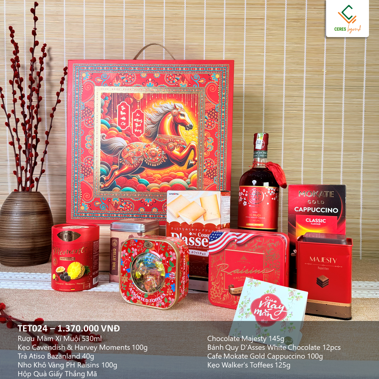 Hộp quà Thắng Mã được tạo tác như hình ảnh tuấn mã vươn mình đầu xuân, mang theo khí thế khởi hành mạnh mẽ và những vận hội đang rộng mở. Trong từng món quà là lời chúc thầm thì mà kiên định: chúc bứt phá giới hạn, chúc hành trình sự nghiệp thêm phần rực rỡ, chúc mỗi bước đi đều vững vàng và dẫn lối thành công.