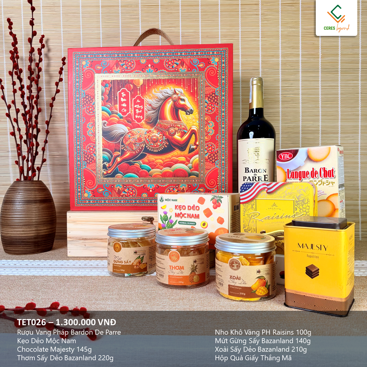 Hộp quà Thắng Mã được tạo tác như hình ảnh tuấn mã vươn mình đầu xuân, mang theo khí thế khởi hành mạnh mẽ và những vận hội đang rộng mở. Trong từng món quà là lời chúc thầm thì mà kiên định: chúc bứt phá giới hạn, chúc hành trình sự nghiệp thêm phần rực rỡ, chúc mỗi bước đi đều vững vàng và dẫn lối thành công.